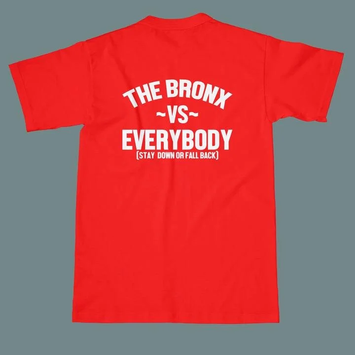 Shop › The Bronx Image 1 of 2 Image 2 of 2 The Bronx $30.00 The Bronx -vs- EVERYBODY Size: SM MED LRG XL 2XL Quantity: Add To Cart Added! The Bronx -vs- EVERYBODY